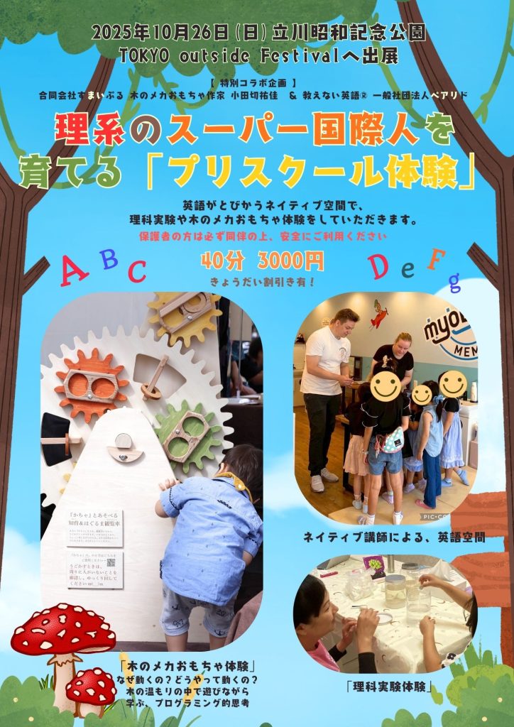 そのうち、今回出展する「理系のスーパー国際人を育てるプリスクール体験」ブースは、10/26(日)の1日のみ、出展する形です。